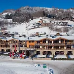Aussenschwimmbad des Hotel Das Alpenhaus Kaprun mit Kitzsteinhornblickから0.9kmの距離の場所に位置する4つ星Avenida Mountain Lodges カプルーンホテルには、26室の客室があります。 比類のないロケーションにあるため、宿泊施設から徒歩で5分離れたシャウフェルベルクへ行きやすいです。